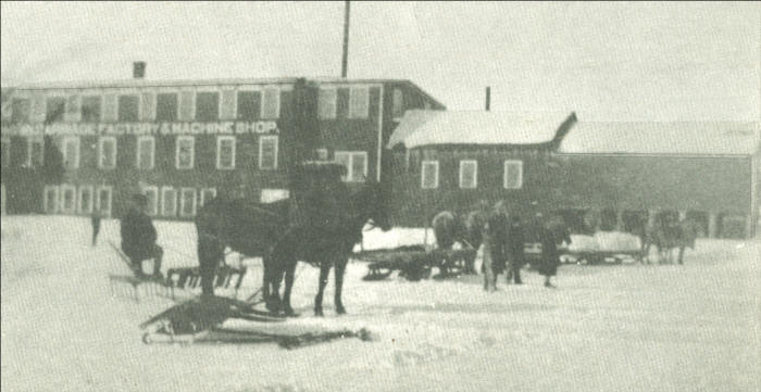 Harvesting ice on O’Neill Creek started soon after Neillsville became a village. The Neillsville Brewery, located above the south creek bank, needed a large supply of ice each year for their brewery storehouse. Home owners and other businesses purchased blocks of ice for refrigeration purposes until electrical refrigerators and freezers be-came accessible. Tibbett Ice & Fuel, carried on the ice harvesting in the early 1900’s; storing it in sheds along the north bank of O’Neill Creek. The Korman-Ghent Carriage Factory & Machine Shop, which faced Hewett Street, is visible in the background.