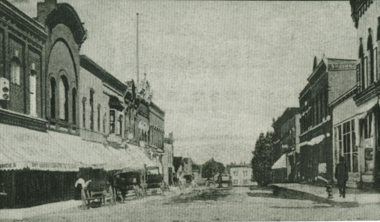 A turn-of-the century photo: of Hewett Street, Neillsville looking northward from the Fifth Street intersection. It was the days of horse-and-buggies for transportation. (Photo courtesy of Bill Roberts Collection)