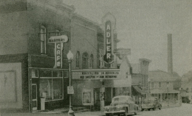 A late 1930’s view of Hewett Street west side of the 600 block that included: Wagner’s Café, the Adler Theater and Northern States Power Company business. Notice the scale by the café’s front door, a feature of that era. It was best to check your weight before going into the café to eat the good food they were known to serve. (Photo courtesy of Bill Roberts’ collection)