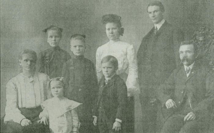 A family portrait including: (back row, from left to right) Elsie, Lillian, Clara and William Tragsdorf; (Front row, from left) Bertha (Wegner) Tragsdorf, Edna, Walter and Bernhard “Benny” Tragsdorf. (Photo courtesy of the Bill Roberts’ collection)