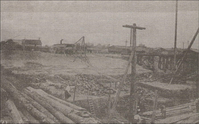 Shortly after the turn of the century, 1900, the Hatfield dam was completed. Many men and horses labored in moving earth and timbers in developing the controlled waterway. (Photo courtesy of the Bill Roberts Family Collection)