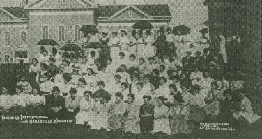 The State Normal School, or Teachers Institute, backed by an appropriation of $20,000 in funds by the Clark County Board, in 1893, did materialize. The Normal School classes were held in the Neillsville High School building. The Teachers Institute prepared many young women and men for Clark County area rural school teaching positions in the late 1890s and early 1900s. (Photo courtesy of Mary Lou Merediths family collection)