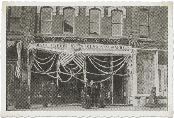 C. C. (Charlie) Sniteman came to Neillsville in 1879, becoming associated with a store operated by Henry Myers. A year later, Sniteman bought controlling interest in the business, establishing the Mammoth Silver Front Drug Store. In 1891, the present brick building was built progressively around the silver-painted frame structure. The business was carried on undisturbed during the time of construction, while a completely new building was erected. (Photo courtesy of Sontag collection)