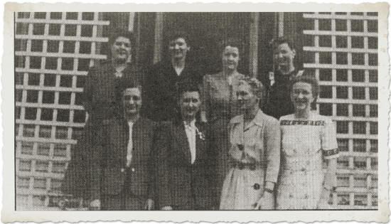 Throughout the years, Neillsville ladies have enjoyed get-togethers in playing challenging card games of bridge. There have been several bridge clubs during those years, some women playing in more than one club. The above photo was taken of a bridge club group in April 1946. (Left to right) front row, Jean Welch, Nat Schiller, Bernie Welch and Ruth Wall; back row: Betty Daft, Marie Covell, Alta Allen and Pearl Bradbury. (Photo contributed by Charlotte Drescher)