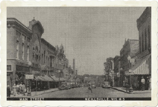 The above photo depicts the activity of shopping in stores along busy Hewett Street in Neillsville, circa 1940. (Photo courtesy of Bill Roberts’ family collection)