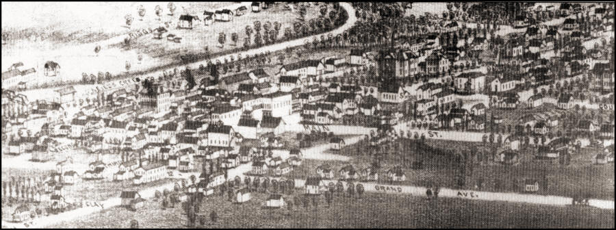 A panoramic view of Neillsville as it appeared to a lithographers artist in 1880. Main Street, then, is now Hewett Street; Third Street is now Fifth Street and Second Street is now Sixth Street. On the North Side, north of ONeill Creek running parallel to the creek was Riggs Street that is now known as Ninth Street. There were other street names that changed also. (The artistic work was done by Beck & Paul, Lithographers of Milwaukee; and published by J. J. Stoner, Madison)
