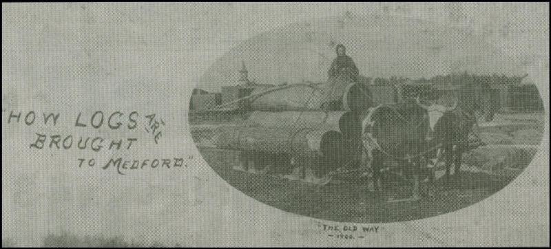 Hauling logs the old way, circa 1900. A lady teamster drove an unusual team, that of an ox and a horse, that pulled a heavy load of logs to town to be sold at one of the saw mills. At that time, as area farmers cleared their land of timber in readiness to till the soil such a sight as that above was seen often, several times each day. It was the days of harvesting top-quality virgin timber. (Photo courtesy of Tom & Betty Barr from their family collection)
