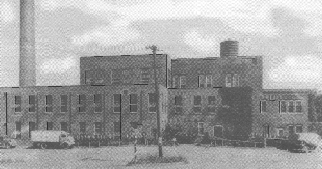 The American Store Dairy plant serviced the surrounding Neillsville area as a buyer of fresh milk from dairy farms for many years and was a big employer of local people. Much of the canned milk product, during World War II, was sent to provide food supply needs around the world. It was during the days of milk-can pickup. As the photo indicates, several milk cans were placed on a conveyor belt, in line to be emptied, with the empty cans exiting the other side of the building to be put back on the trucks waiting in line. (Photo courtesy of Bill Roberts family collection)