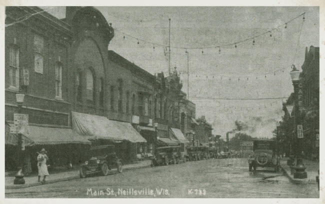 A view of Hewett Street, looking north from the Fifth Street intersection, circa 1920, in Neillsville