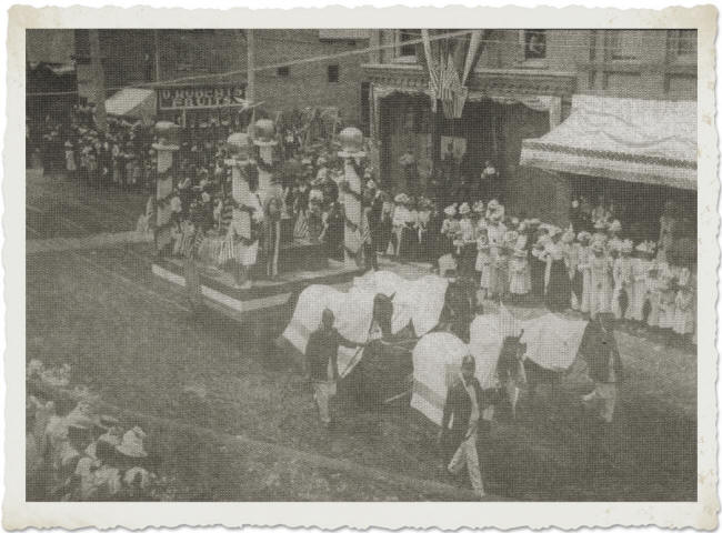 A July 4th celebration in Neillsville, circa 1900, featured a parade that marched through the downtown. Above is a float which was decorated and entered by the Marsh Department Store. (Photo courtesy of Bill Roberts collection)