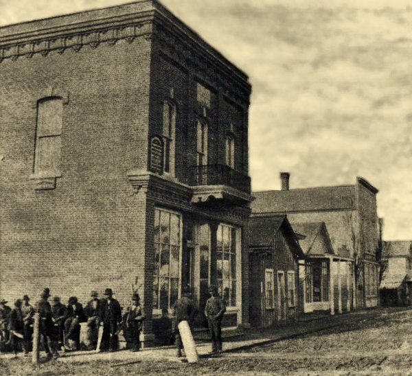 This 1878 photo was taken at the corner of Hewett and Fifth Street. It shows only one recognizable structure, which remains today, the two-story Hewett and Woods brick building now owned by Neillsville Mayor Diane Murphy. All Season Sports N Archery is located on the first floor. Notice the upper story front balcony, which is no longer on the building. |