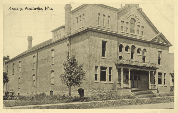 The first Neillsville Armory, built in the late 1800s, was located on Fourth Street, between Court and Hewett Streets. It served the community as not only the National Guard Units headquarters, but also as an auditorium for dances, basketball games, theatrical productions and other functions.