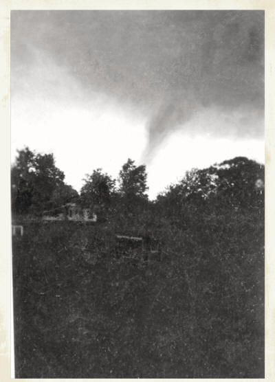 Tornados have occasionally passed over the Clark County area in the past. The above photo was taken as a funnel cloud approached the area northwest of Neillsville, near the Mound, in 1942. (Photo courtesy of Jerry Quicker’s family collection)