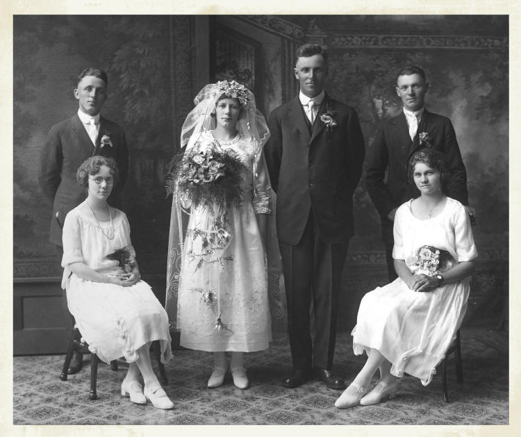 One of the prettiest weddings of the season, it was reported of the Emma Marg and Herb Bardeleben marriage, which took place in late July 1922. Left to right: attending couple, Esther (Poppe) Meihak and Albert Marg; bride and groom, Emma (Marg) Bardeleben and Herb Bardeleben; attending couple, Arthur Ackerman and Martha (Lenz) Albrecht. (Photo courtesy of Dorothy (Ackerman) Anderegg)