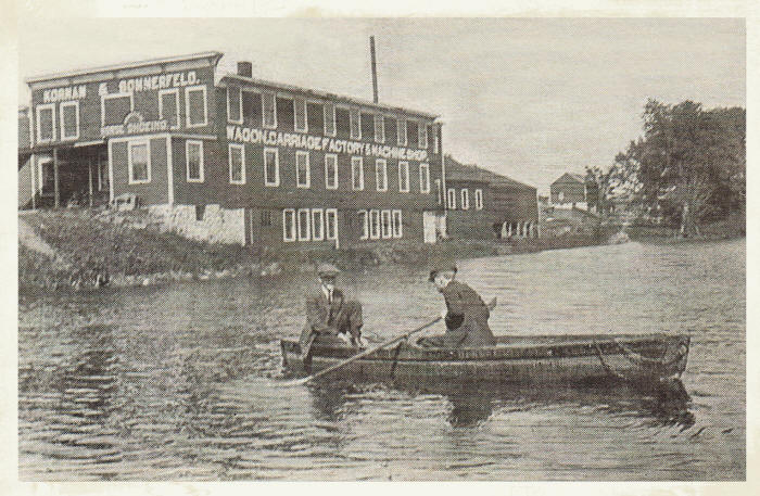 Another product turned out by Barton, Wolff and Korman’s Wagon and Buggy Shop was the wheelbarrow, their own special kind, made of wood, with wooden wheels and spokes. The setting of wagon, buggy and wheelbarrow tires was an important part of their work. In this connection, the name of Martin Kapka should be mentioned as their chief black-smith from 1889 until his death in 1911.