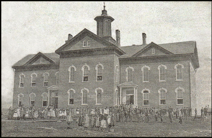 Construction on the first modern Neillsville School building was completed in September 1875. The building site was purchased for $200 from James ONeill and the cost of construction was $7,000. The school property faced State Street with East Fourth Street on the north side. (Photo contributed by Bill Roberts)