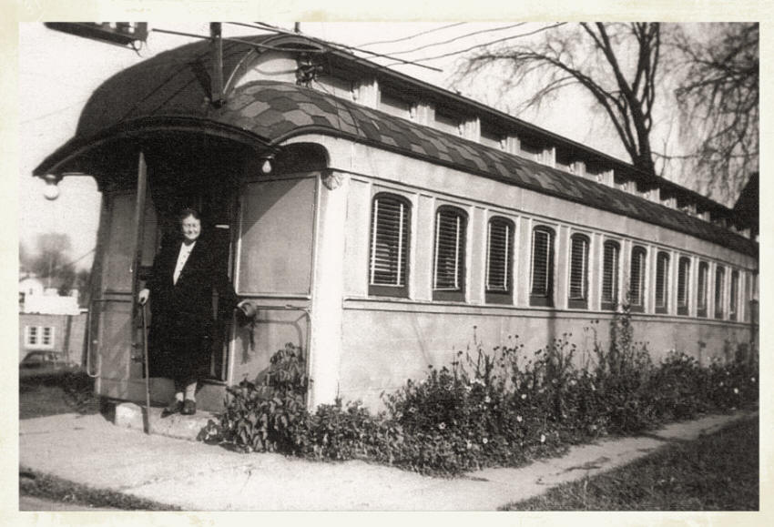 A 1948-49 view of the Al’ Aboard Diner with Mrs. Schultz standing in front of the entrance of the unique and popular diner, where many remember having stopped to order a burger or other lunch specials during its existence. The remodeled railroad car, made into a diner, was located along Hewett Street and across from the Seventh Street Intersection.