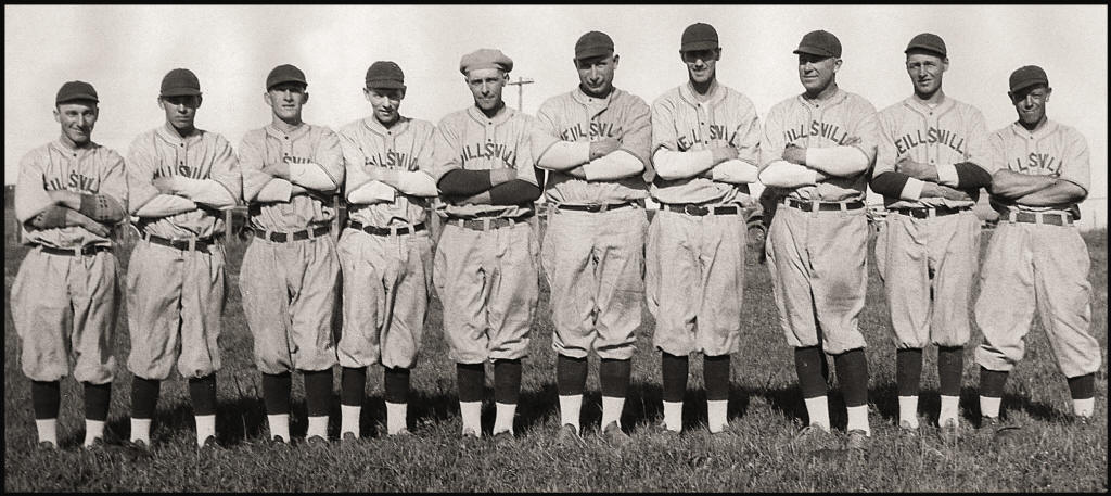 The month of April is when the baseball season begins. During the first half of the 1900s, every hamlet, town and village was represented by its own baseball team, each team being made up of local players. Spectators looked forward to cheering on their hometown team, such as in the 30s when a highly contested game was played between the Chili and Neillsville teams at the fairground field. The bleachers were filled to capacity with standing room only. The above Neillsville baseball team played in the early 1930s. Left to right: Fritz Grap, Sr., Lefty (Albert) Zank, Walter Zank, Dolly Wasserberger, Bill Naedler, Duke Zittelman, Free Carleton, Carl Olsen, Armen Stub Gerhardt, and Dusack. (Photo courtesy of Walter Zanks Family Collection)