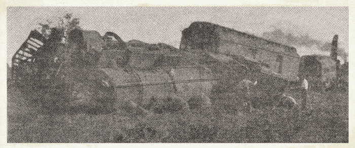 Engineer Joe Burkhart of Altoona had slowed up for a curve and saw some water, and just after crossing the washout the rails broke and spread. The three coaches, including the sleeper, remained on the track, one at a dangerous angle, but the engine fell over on its side.