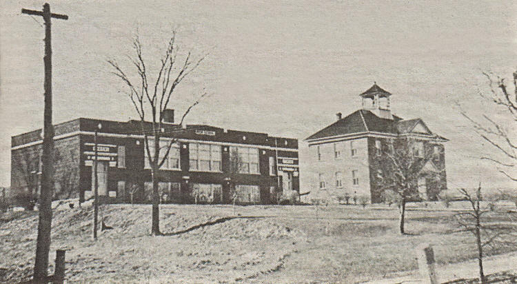 The Granton School District’s third schoolhouse was built in 1884 with a second floor addition in 1887, shown at the right. Construction on a new high school building was started in 1917, completed in 1918, at the left in the photo.