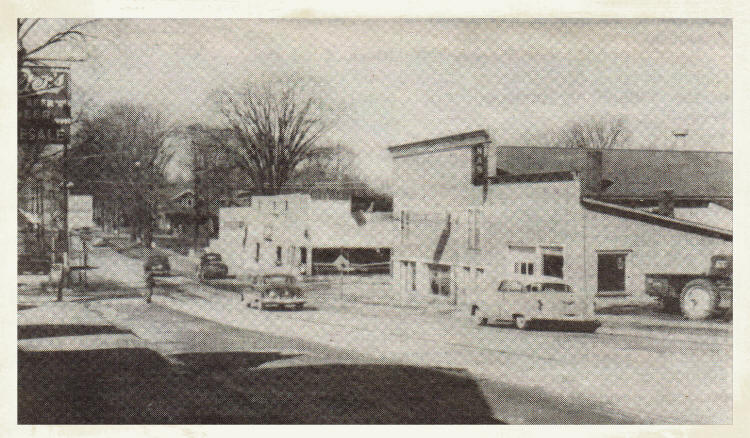 A circa 1950 view of the 5th Street and Grand Avenue Intersection, Neillsville; Stelloh’s Garage was on the northwest corner. Paulson’s car dealership and repair shop was on the lower level of the northeast corner building, with the Moose Lodge Hall on the second level where many community events were held such as wedding receptions, club meetings, dances and various parties. (And on the southwest corner was Wall’s Deep Rock Service Station.)