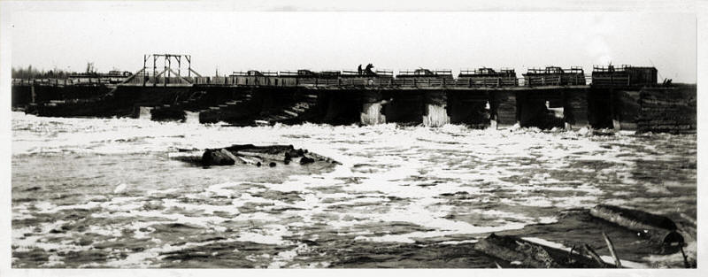 Dells Dam played an important role in controlling the current of Black River waters while moving harvested logs from the Clark County pineries to market in La Crosse and points beyond along the Mississippi River during the late 1800s. (Photo courtesy of Sontag Collection)