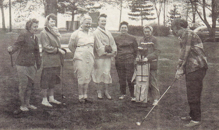 The above photo, taken in the late 1940s, shows a group of Neillsville ladies (Left to right) Laniece Schiesel, Betty Marshall, Alice Wasserburger, Metty (Russell) Roberts, Grace Urban, and Lovetta Anderson taking golf lessons from Lillian Selk, at the Neillsville Country Club course. The trees in the background were along the parking lot and Highway 10. (Photo courtesy of Dan Patey)