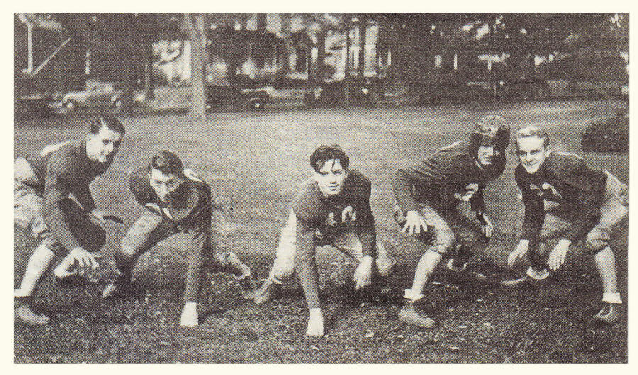 Some members of the 1935 Neillsville High School football team, left to right: Bill Lowe, Jack Crothers, Don Paulus, Cliff VandeBerg and Vilas Kraft.