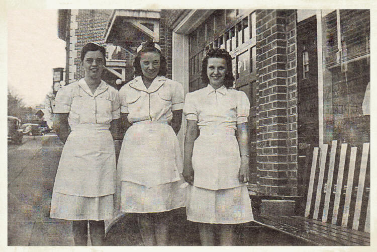 Chapman’s Restaurant was located on the west side of the former Neillsville Fire Hall, now site of the city police station. The above Oct. 24, 1940 photo is of three waitresses who worked at the restaurant, left to right: Louise Scheel, Ellen Freedlund and Anna Belle (Gassen) Bauer. (Photo courtesy of Mary Jane (Bauer) Mabie)