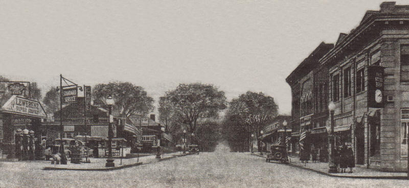 O. W. Lewerenz obtained property on the southeast corner of Hewett and 5th Streets in 1928 where he operated a Standard Service Station and Pontiac dealership, later obtaining an adjoining building where he made ice cream in addition to a sweet shop. The businesses were sold in the early 1950’s. Notice flags place in the sidewalk along the curb, one in front of each business place.