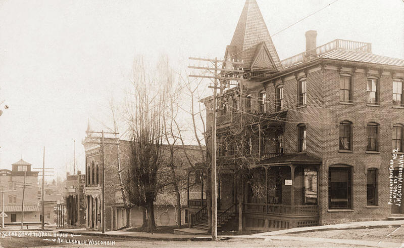 The ONeill House as it appeared in its hey-day, back in the 1870s. The building was built by James ONeill, its founder, later having other owners, one being James Paulus, who operated it for a number of years. The ONeill House was looked upon, in its time, as an elegant place, including electric lights that became available to some Neillsville businesses in 1883, the first city in Wisconsin to have electricity other than Milwaukee. |