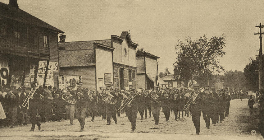 Marching northward on Hewett Street, entering the Fifth Street intersection as a part of the Decoration Day ceremonies that year.