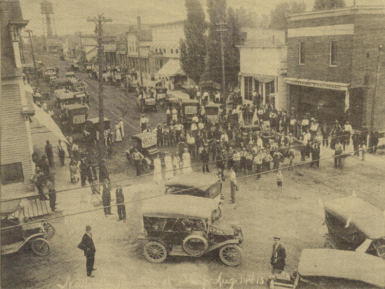 The above photo was taken August 13, 1913, on Thorp’s Main Street with