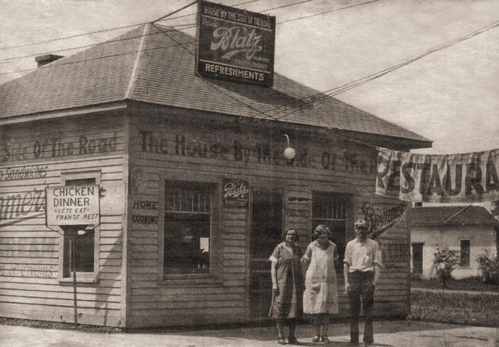 An early 1930s photo of “The house by the Side of the Road” building that stood on the southwest corner of the Division and south Hewett streets intersection for several years, with some business name changes along the way, such as “The Roadside Bar & Café,” and the last, the “White Horse Inn.” Delicious food, genial hospitality and fun were always features that went with the atmosphere. On some evenings, patrons joined in singing their favorite songs, demonstrating some good local talent, or dancing to some old favorites played on the jute box. The building was razed approximately 25 years ago. |