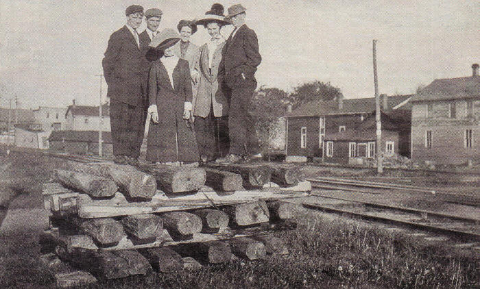 This family photo was taken by the Neillsville railroad depot with a Seventh street building visible in the background (Photo courtesy of Steve Robert’ family collection)