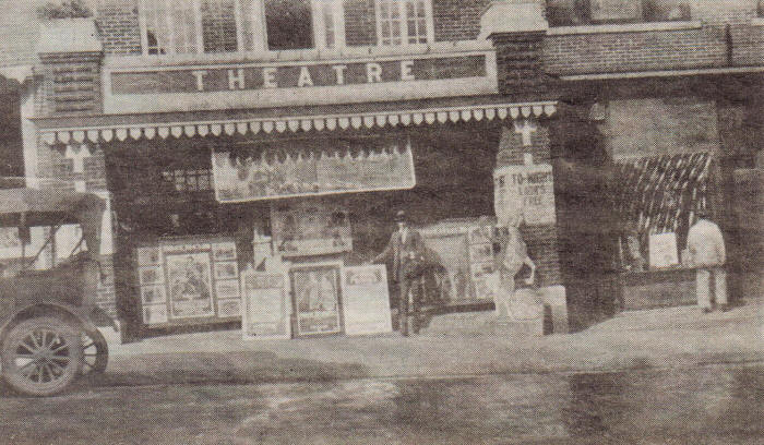 Trags Theatre was built by William Tragsdorf circa 1920, located in the 600 block of Hewett Street, second building north of West 6th Street intersection. The above photo shows William Tragsdorf standing near the front entrance. It later carried the name of Adler Theatre and last in its existence was known as the Neillsville Theatre. (Photo courtesy of Bill Roberts) |