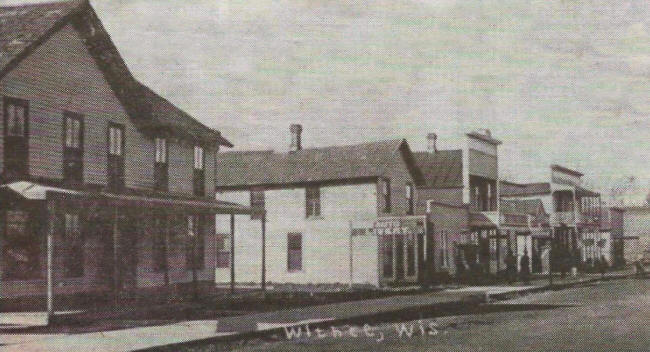 An early 1900s view of Withee’s Main Street shows one automobile parked along the boardwalk.