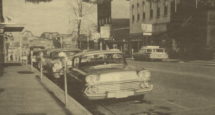 A 1960 Christmas season view in Neillsville, along the east side of the 500 block of Hewett Street. Notice there is no snow along the sidewalk, a balmy winter day in Neillsville! (Photo courtesy of Bob Boysen, a former Neillsville resident.) |