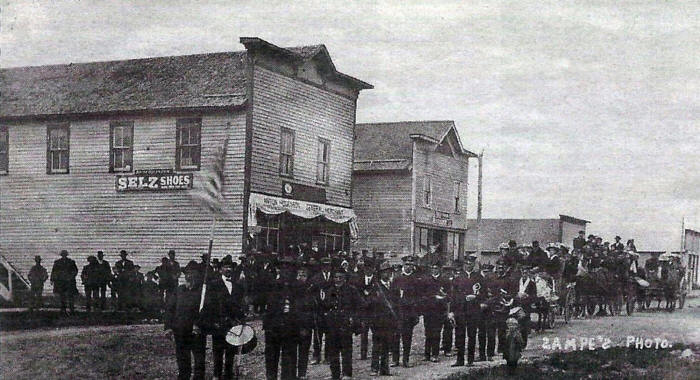 A circa 1910 photo taken of a celebration, which included a band and other units that marched down Chilis Main Street.