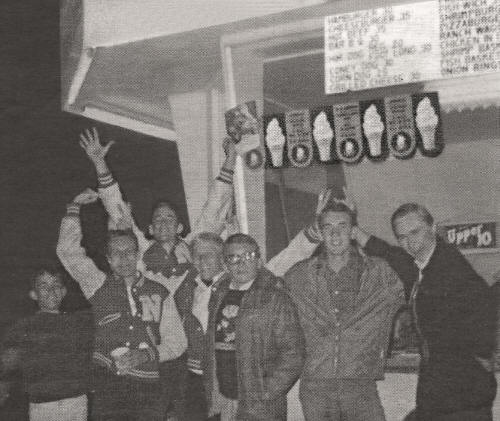 The A&W Root Beer Stand and The Penguin were favorite “hang-outs” after school in the spring.  The Penguin located along Hwy. 10, near the intersection of South Hewett Street.  The above mid-1960s photo taken of some high school students standing by the Penguin; (left to right): Ronny Svetlik, Ken Carl, Bill Knoff, Dick Schoengarth, Ron Marden, Steve Mabie and Ken Lindekugel.  (Photo courtesy of Bob Boysen)
