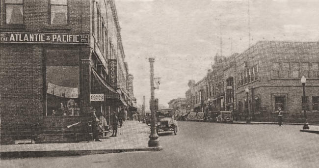 In 1937, the Neillsville A&P store was one of a chain of 54 A&P grocery stores within the Milwaukee-based district. The local A&P store was located on the southeast corner of Sixth Street. At that time, on the north side corner, there were steps going down to a barbershop. A barber sign was posted above. |