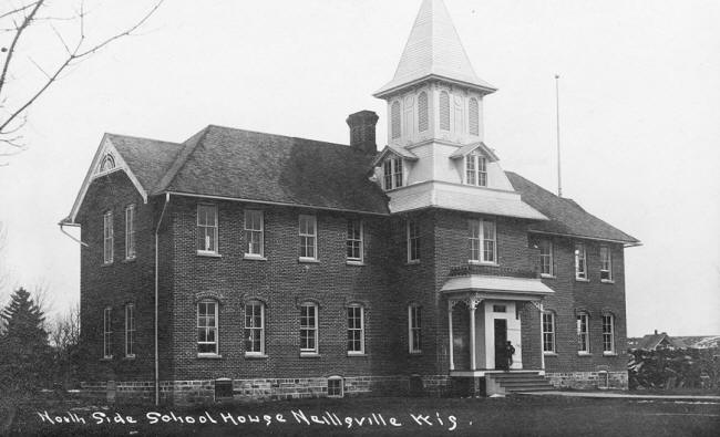 The North Side Elementary School, for students up to sixth grade, was built in 1885 on a lot purchased for $800 and constructed for $4,000. It was built so high school students could be housed in the South Side building. The North Side building was abandoned upon construction of a new high school building in 1967 and later razed. The grounds were on the east side of Prospect Street, between 11th and 12th Streets. |