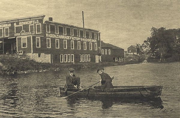 The above photo of the Korman-Sommerfeld factory was taken after the business merger in 1911. It was located along North Hewett Street, next to ONeill Creek. Some of the buildings footings went into the creeks bank. The wagon-buggy facturing business started in 1887 under the ownership of Barton, Wolff & Korman. |