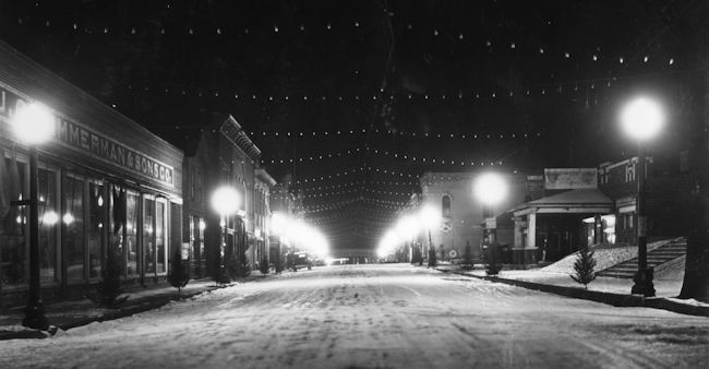 This circa 1930 photo of Neillsvilles Hewett Street, looking north from the 4th street intersection and taken during the Christmas season, shows the decorating of that era. Seven or eight strings of white lights were hung over the street in each block. The Rotary Club members cut evergreen trees out of the Clark County Forest swamps. Then with help of the Boy Scouts, club members placed a tree in front of each store along Hewett Street. It was up to the store owners to decorate the trees. The stores were open for business every day an evening, except on Sunday. |