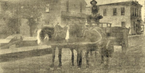 Above is a photo of one of A. Hauges dray teams, pulling a delivery wagon with a teamster believed to be Harry St. Claire. Eventually, motorized trucks took the place of the horses. Hauge was the first owner of a delivery truck in Neillsville, a 1926 model oil tanker, for delivering gas and fuel oil. |