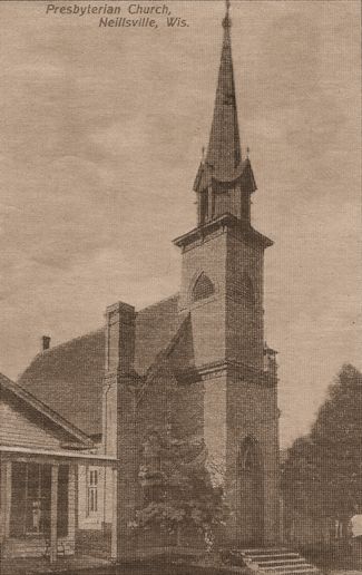 The organization of a Neillsville Presbyterian congregation began with a meeting in 1869. In 1875, the congregation was able to build a church at the 149 East 4th Street site, Brick used in its construction was made by Edward King, who operated a brickyard on land between Hewett and Clay Street in the area of 4th Street. The church building was destroyed by fire Feb. 9, 1930. The Presbyterians then merged with the Methodist congregation. |