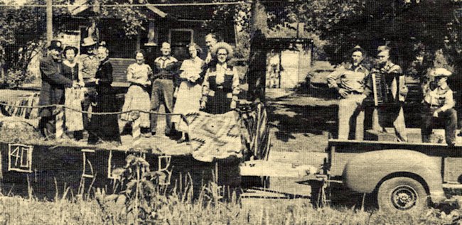 Members of the 40s Square Dance Group entered a float representing their danced club during Clark Countys Centennial parade that was held in Neillsville. Louie Nemitz is holding an accordion, standing in the back of the pickup. Louie was often accompanied by his brother Art, also a musician, when they played for many local dances. |