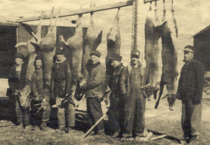 Shown above is a 1930s deer hunting party, members of which were made up of two long standing Pleasant Ridge families, the Vines and Hubings. The group represented what is known as a successful hunt having filled -up seven hunters tags with seven deer. Contact us if you can identify any of these individuals. |