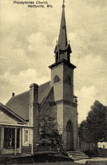 One of the earliest churches in Neillsville was that of the Presbyterian congregation, which was built in 1865. It was located at 152 East Fifth Street on the south side of the street. A fire destroyed the building on Feb. 9, 1930. The congregation then merged with United Methodist, whose church was located nearby. |