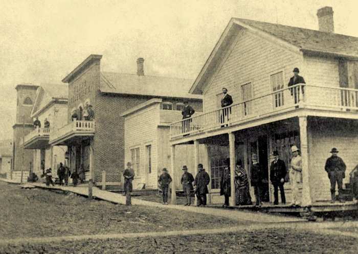 (Chas. Cornelius hired a contactor to put up a new building on the southwest corner of Hewett and W. Fifth Street, which was occupied by the First National Bank, a business also started by him. DZ)